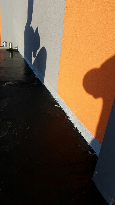 Izvedba hidroizolacije terase elastičnim polimer-bitumenskim premazom Köster Deuxan 2K (izduženje prije sloma 100%). Detalji obrađeni sa visokoelastičnim 1K bitumenskim premazom Köster KBE Tekuća Folija (izduženje prije sloma 900%). Prije ugradnje premaza AB ploča premazana je sa polimer-silikatnim primerom Köster Polysil TG 500.