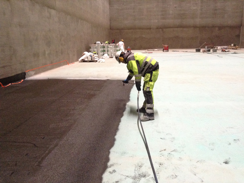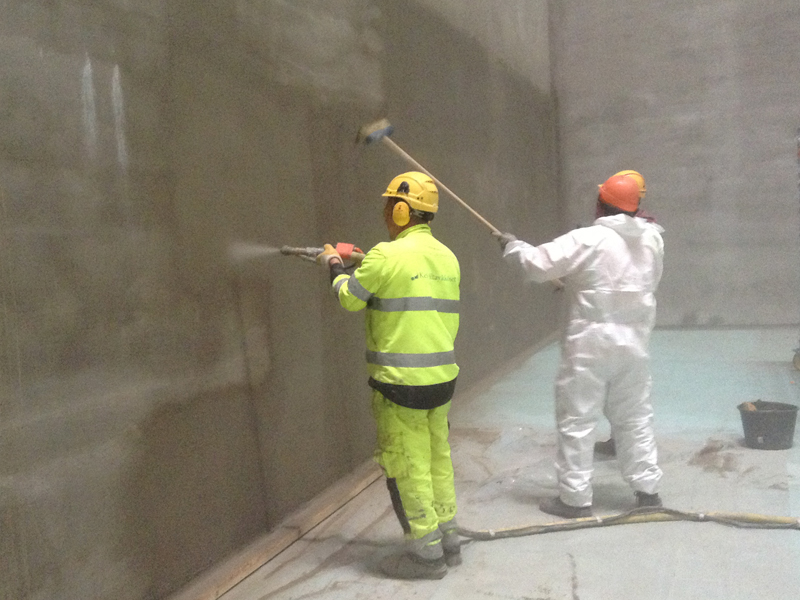 Negative side waterproofing with KÖSTER NB 1 Grey: Spray application