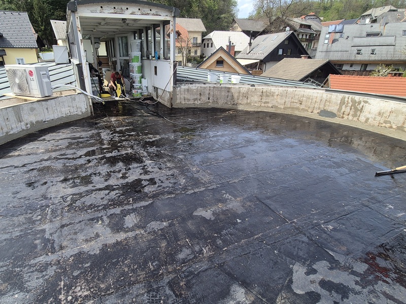 Sanacija strešne terase v Diagnostičnem centru Bled.
