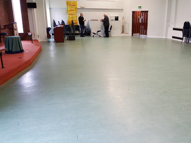 The busy church hall became unfit for purpose over several the years of use. The vinyl surface appeared very bumpy due to the accumulated moisture that had built up.