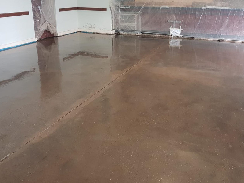 After an extension over 30 years ago, this busy church hall suffered from ongoing moisture vapour problems. A new section of slab was poured to increase the hall area. A DPM was not installed under the old or new floor slab.