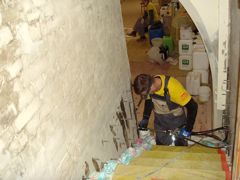Meeting Room renovation. Waterproofing from the negative side, structural injection, coating insulation, renovation plaster system.