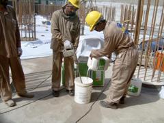 Mixing of KÖSTERNB Elastic Grey with KÖSTER SB Bonding Emulsion