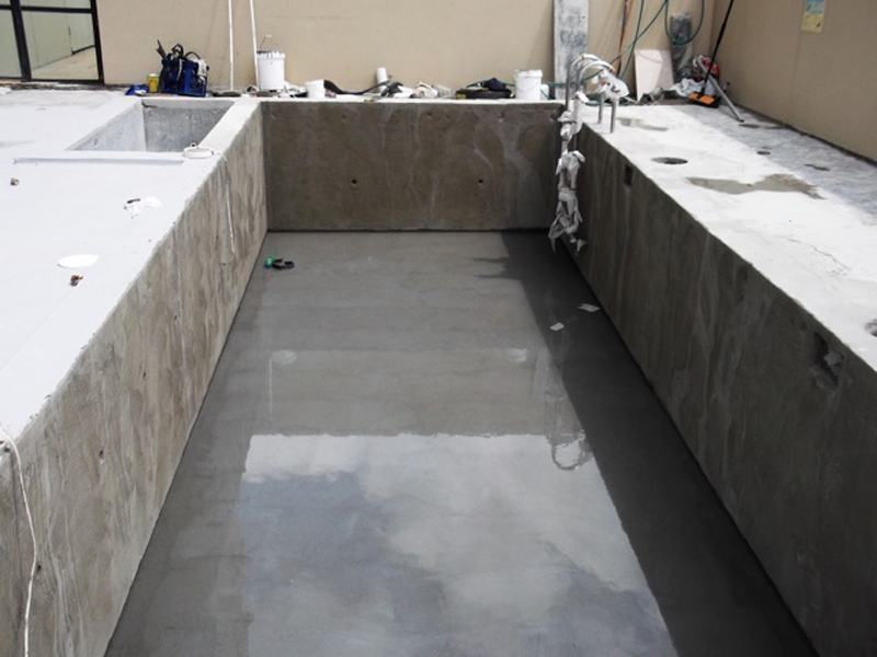 Before & after photos of Waldorf Aparments' swimming pool & spa. The pool was totally stripped back to bare masonry, all blowholes & repairs carried out with KÖSTER Repair Mortar Plus prior to priming all surfaces with KÖSTER Polysil TG500. KÖSTER NB1 Grey system was then applied to pool & spa areas prior to tiling & then put back into service for Hotel guests use.
