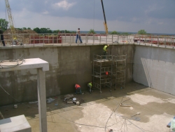 Betonowe zbiorniki na ścieki były zabezpieczone od wewnątrz w systemie KOESTER NB 1 Plus. Dylatacje były uszczelniane masą dylatacyjną KÖSTER Fugenspachtel. Części zbiorników zagłębione w gruncie były izolowane emulsją bitumiczną KÖSTER Bitumenemulsion.