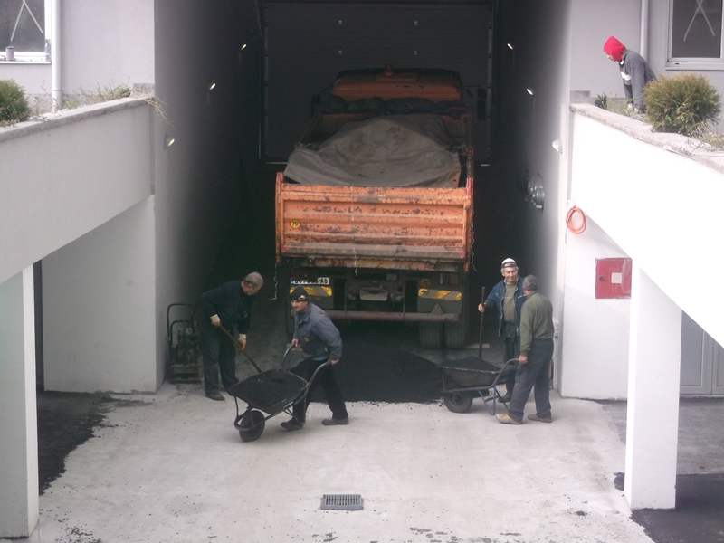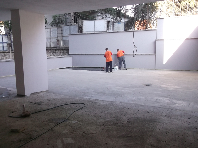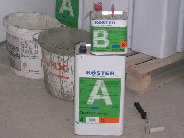 First step: Substrate preparation of tray/garage over concrete panel with KÖSTER NB 1 Grey. Second step: Priming with KÖSTER Bridge Coat. Third step: Application of KÖSTER PUR-Bitumen in two layers. After curing, application of finisch layer with asphalt/concrete.